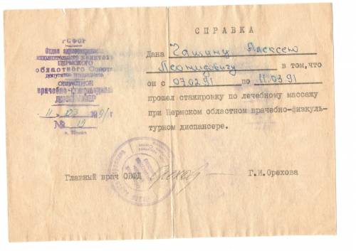 Первая справка о прохождении врачебных курсов в 1991 году